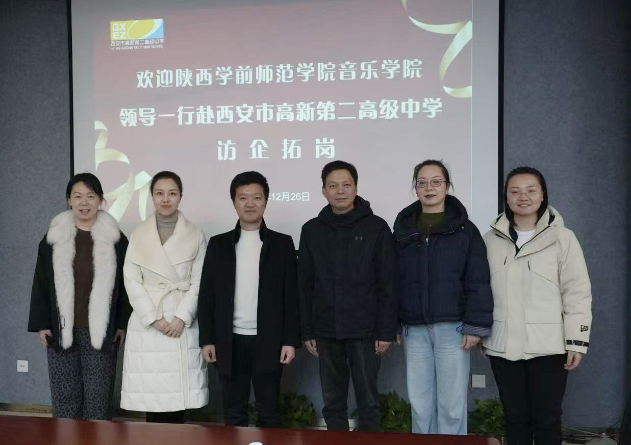 为深化产教融合、拓展就业渠道,12月26日,陕西学前师范学院音乐学院与西安高新第二中学开展访企拓岗专项交流活动。音乐学院副院长白学良、赖琼琼及师生代表,与高新二中副校长封永强等领导齐聚,共商合作事宜。