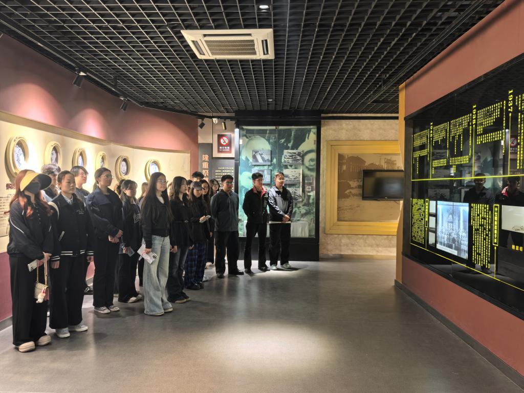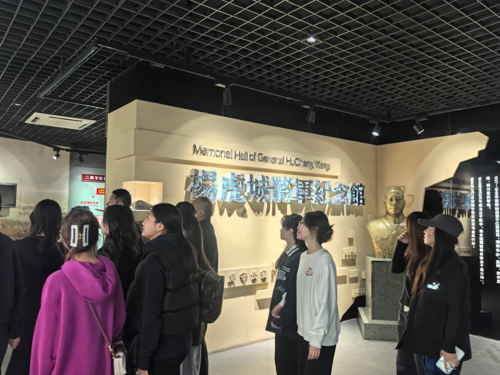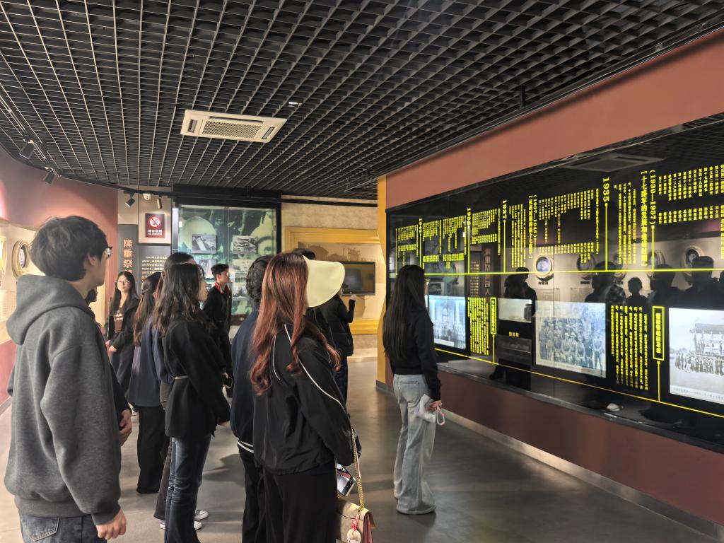 默哀毕,学生代表上台发言,追忆革命先辈的英勇事迹,抒发青年学子传承红色精神、勇担时代使命的坚定信念。紧接着,全体人员高举右拳庄严宣誓,铿锵誓言彰显着青年学子铭记历史、砥砺前行的决心。 仪式最后,大家有序绕行纪念碑,依次敬献鲜花,随后在讲解员的带领下参观陵园革命事迹展区,通过历史文物与事迹讲解,深入学习革命先烈的爱国精神,接受沉浸式红色教育。