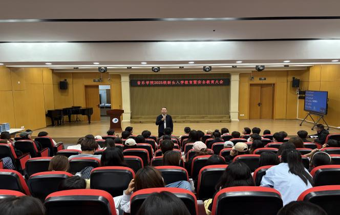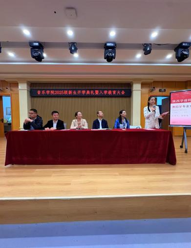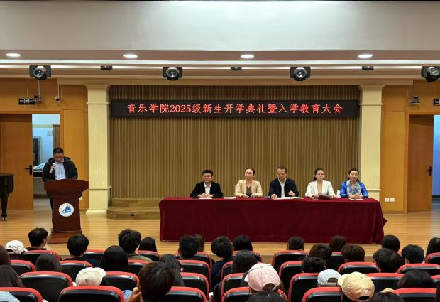 2025年9月22日下午,音乐学院2025级新生开学典礼暨入学教育大会在2教C1教室隆重举行。学院领导、各系主任、各专业负责人、全体辅导员与2025级全体普本新生,共同见证这一开启大学新篇章的重要时刻。