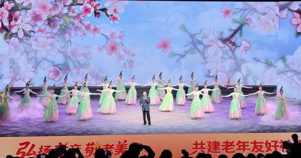 演出当晚,舞蹈系学子用灵动的舞姿、饱满的热情倾情演绎舞蹈作品《在那桃花盛开的地方》。青春的舞步传递温情,艺术的光影连接代际情感,舞台上流动的美与真情将现场气氛推向高潮,展现了新时代大学生对银龄群体的真挚敬意与深厚情谊,也生动诠释了学校“立德树人”的育人理念与美育成果。