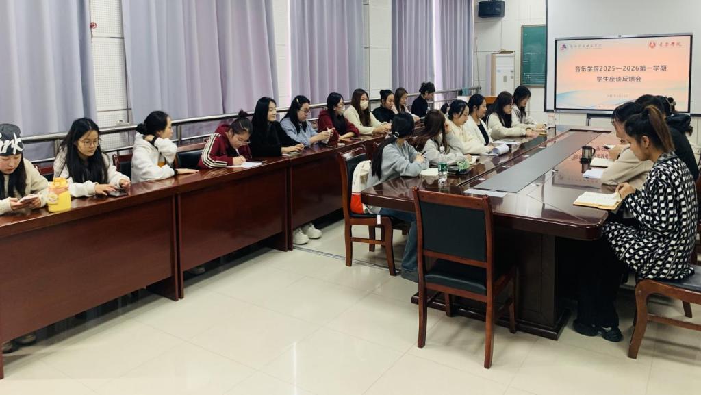 为精准把握课堂教学动态、搭建教与学的高效沟通桥梁,充分发挥学生在教学管理中的主体作用,进一步提升课堂教学质量与教学服务水平,2025年11月3日,音乐学院于607会议室召开2025-2026学年第一学期期中教学质量学生座谈反馈会。分管教学工作的赖琼琼副院长、分管学生工作的解跃副书记,各系主任、教学秘书与30余名学生教学信息员共同参会,会议由赖琼琼副院长主持。