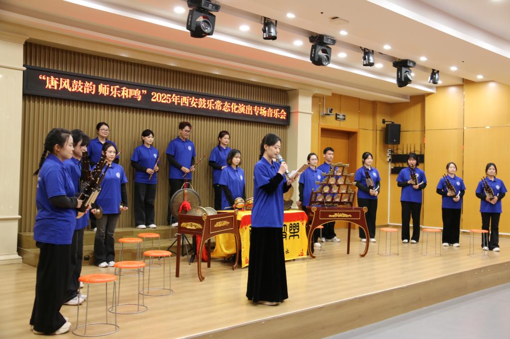 11月26日下午,“唐风鼓韵 师乐和鸣”西安鼓乐进校园专场音乐会在我校大学生公共艺术教育中心精彩上演。作为联合国教科文组织认定的人类非物质文化遗产,被誉为“中国古代音乐活化石”的西安鼓乐,以独具盛唐风韵的艺术魅力,为我校师生带来了一场跨越千年的文化体验。