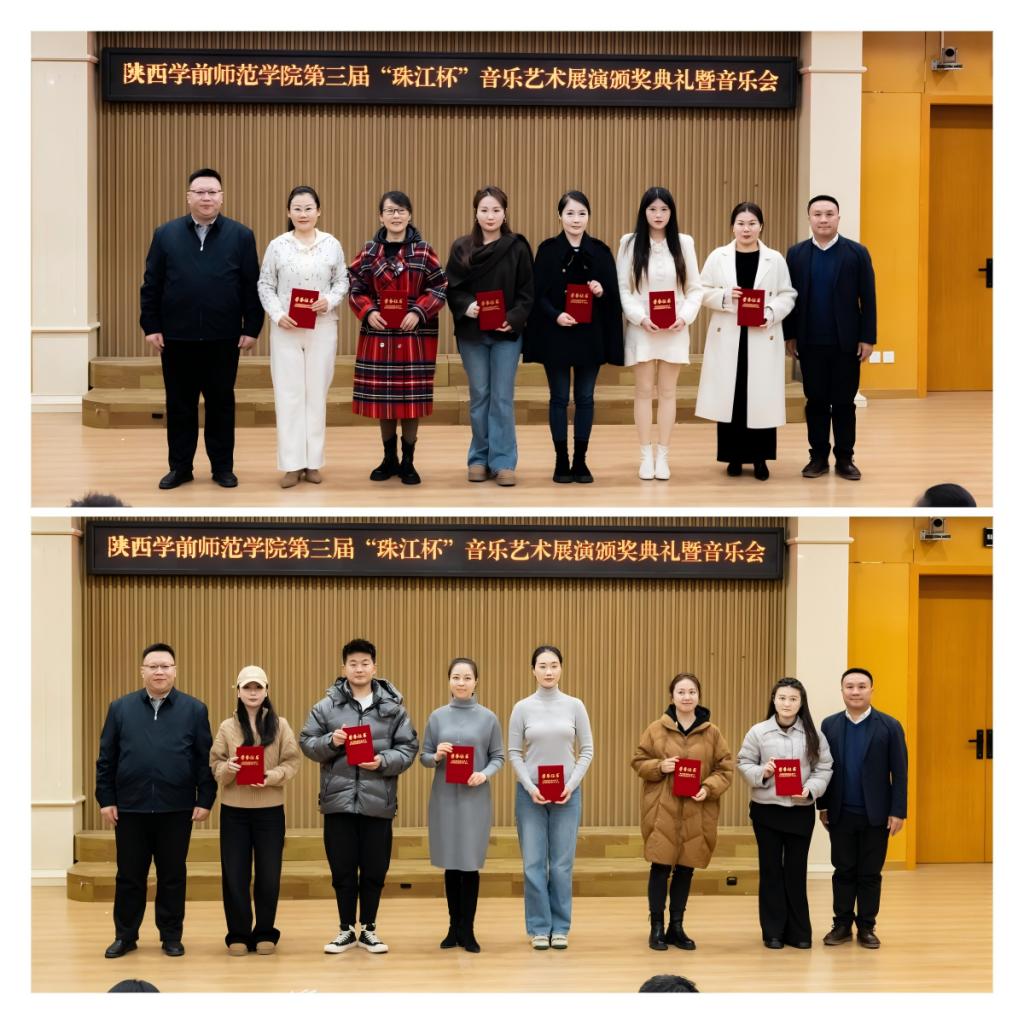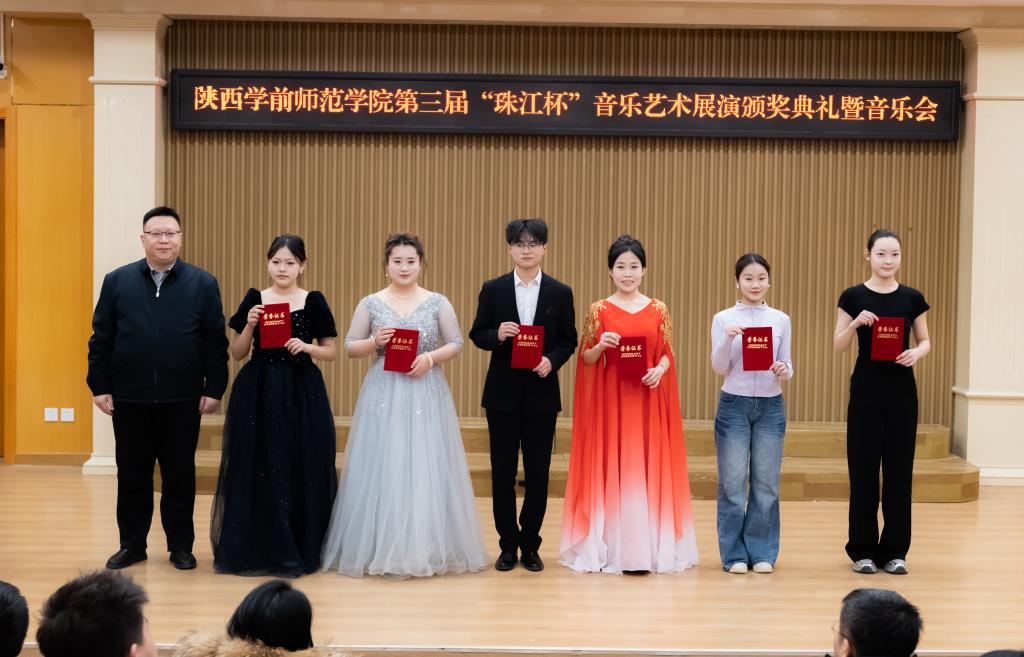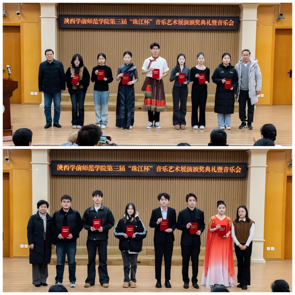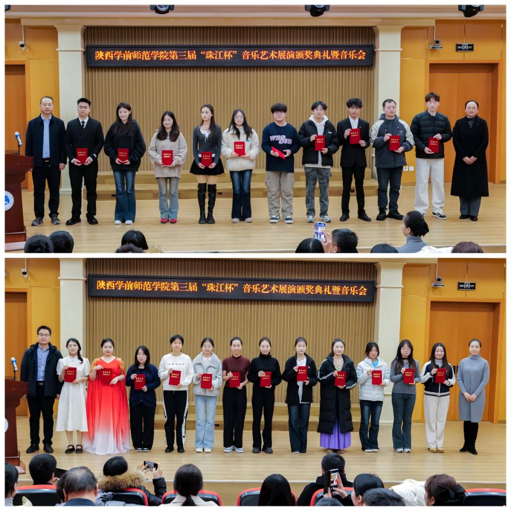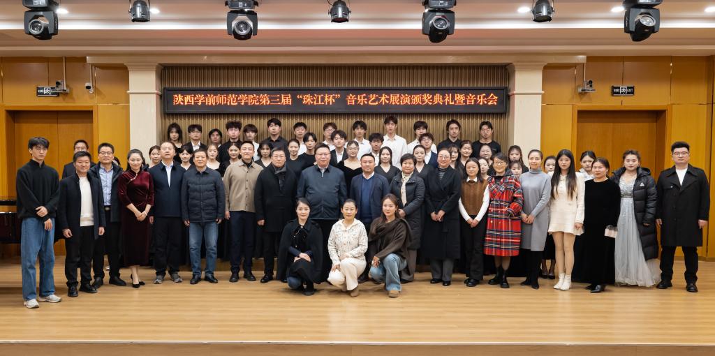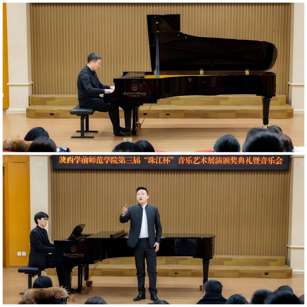 2025年12月24日下午14:30,陕西学前师范学院第二届“珠江杯”音乐艺术展演颁奖典礼暨音乐会在学校音乐厅隆重举行。李明军副校长、相关职能部门负责人、音乐学院师生代表及广州珠江恺撒堡钢琴有限公司嘉宾齐聚现场,共鉴荣誉、共享音乐盛宴。